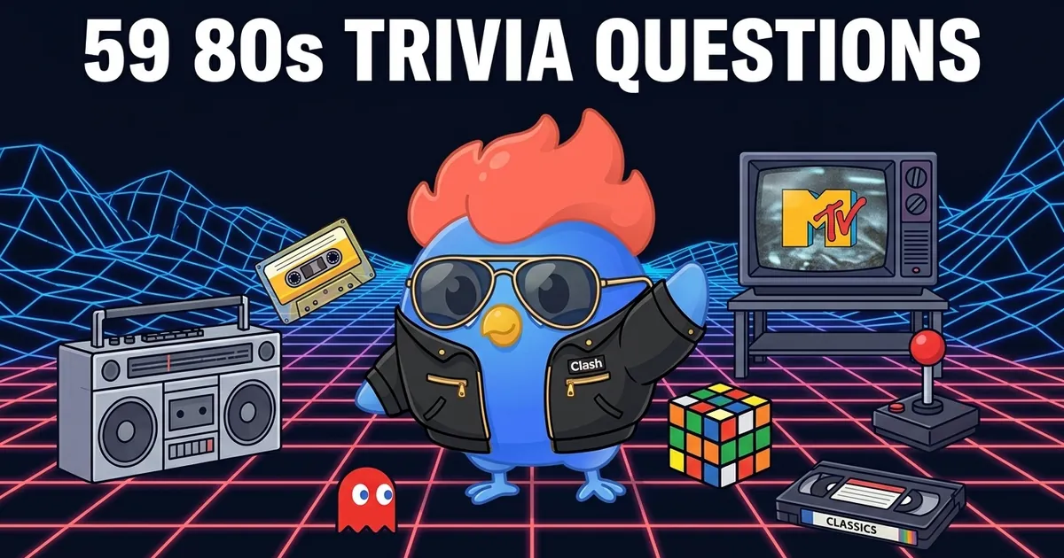 Music, movies, and technology stump the widest range of players. On LearnClash, 80s pop culture questions score high wrong-answer rates because people mix up decade details. This list covers eight categories at three difficulty levels with 59 verified questions and answers.