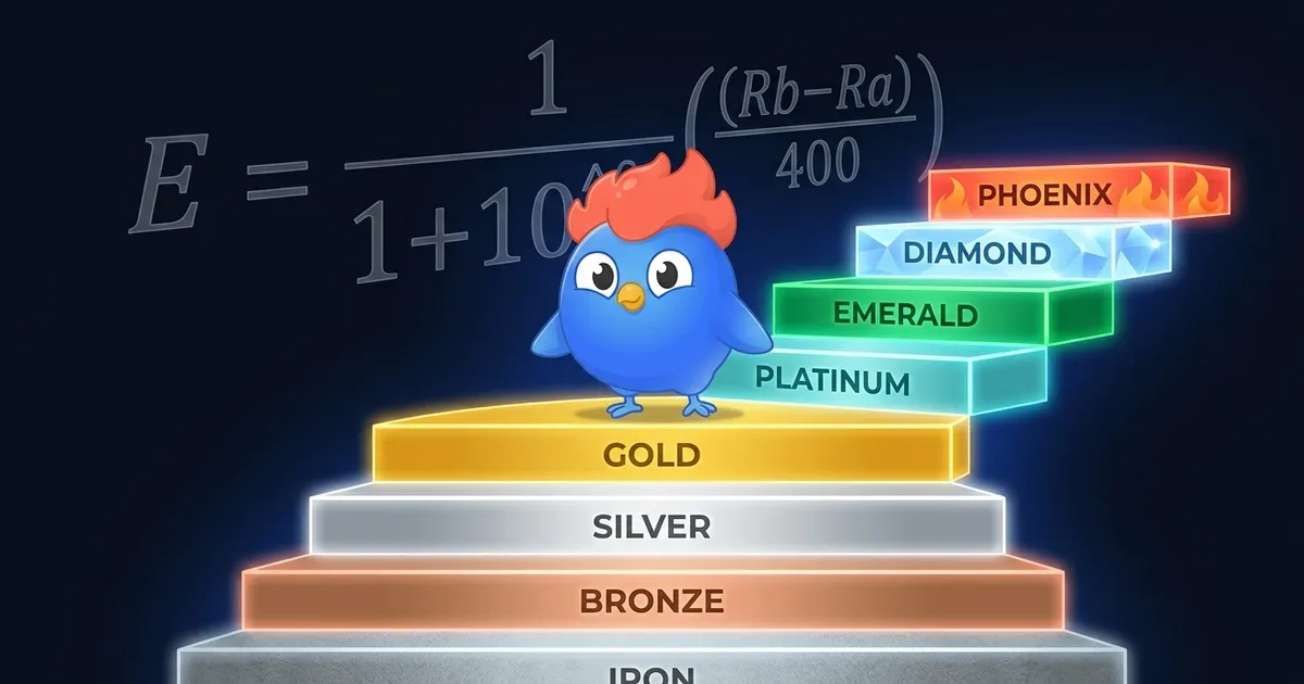 The ELO rating system ranks players by skill using win probability math. See how LearnClash adapts chess ELO to quiz duels with 8 tiers and adaptive K-factors.
