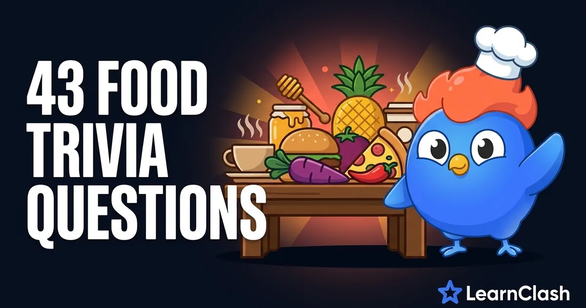 These 43 food trivia questions on LearnClash cover fast food origins, surprising ingredients, food history, global cuisine and nutrition, organized from easy conversation starters to questions that stump even professional chefs. Every answer includes a breakdown of why it trips people up, with facts sourced from the USDA and Smithsonian.