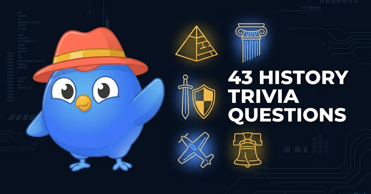 These 43 history trivia questions on LearnClash cover ancient civilizations, medieval empires, modern wars, and American history, organized from easy pub quiz warmups to questions that stump even dedicated history buffs. Every answer includes a breakdown of why it trips people up, with facts cross-checked against the Smithsonian and National Archives.