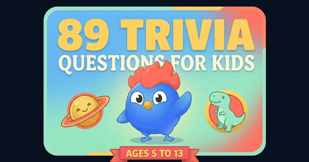 Ces 89 questions de quiz pour enfants couvrent les animaux, les dinosaures, l’espace, les sciences, la géographie, Disney, plus des niveaux faciles et difficiles adaptés aux 5 à 13 ans. Chaque réponse explique pourquoi la question piège les enfants, donc une réponse juste ou fausse finit toujours par un fait qu’ils retiendront. Faits vérifiés avec BBC Science Focus, National Geographic et la NASA.